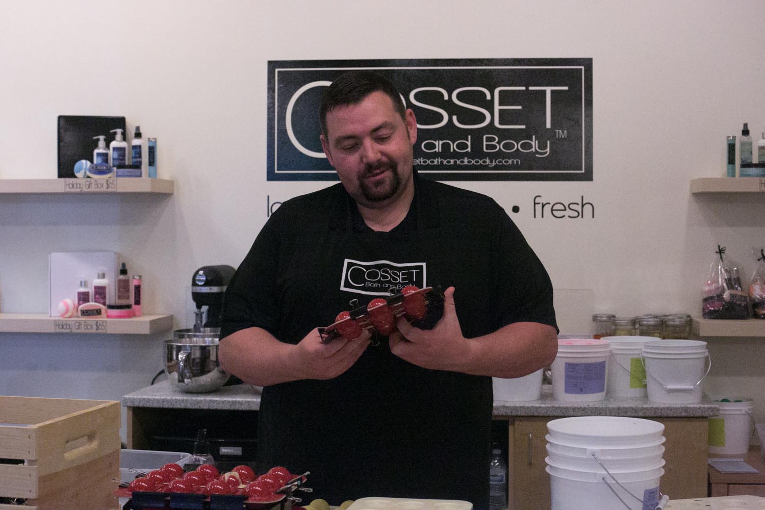 In 2007 David’s little boy was diagnosed with chronic Eczema, and for those of you who have experienced Eczema first hand- you know it is not a fun experience. So frantically they searched for something to cure the itchy and dry skin… BAM. Cosset was created. after years of testing and creating the perfect combinations, last summer he sold his bath bombs at the local farmers market. The demand was far more desired than expected. So flash forward to September 12, 2014 when the first official Cosset bath and body shop was opened.