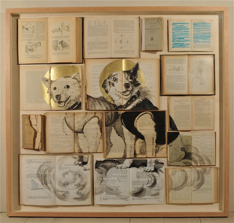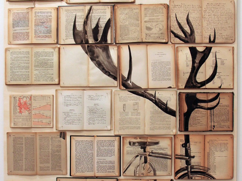 “Be careful sweetheart, that’s a book. We take care of our books.” Is a mantra that every child hears. Which makes the work of Ekaternina Panikanova all the more compelling. Using a mixture of installation, collage, and painting, artist Ekaterina Panikanova creates paintings across old book and random sheets of paper. Born in St. Petersburg in 1975, Panikanova graduated at the top of her class from the Academy of Fine Arts and was subsequently given a studio to work from for five years. She now lives and works in Rome. Much of what you see, was from her second ever solo show Un, due, tre, fuoco at z2o Galleria earlier this year, and if you’d like to see more, check out her website.