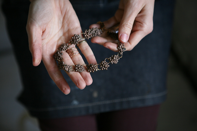 As far back as I can remember I was always drawn to anything that required working with my hands. There is a home video of me gifting my youngest sister with a necklace made of copy paper and tape on her first birthday. I used to spend hours upon hours arranging flowers (which were actually weeds from the yard) into little bouquets, and when I was in elementary school, I was obsessed with beading and friendship bracelets. I was and still am interested in the source of objects; where a particular object comes from, how it’s made, who made it, etc. I think once I figured out that I could form something that could then be worn or serve a utilitarian purpose, I was sold.