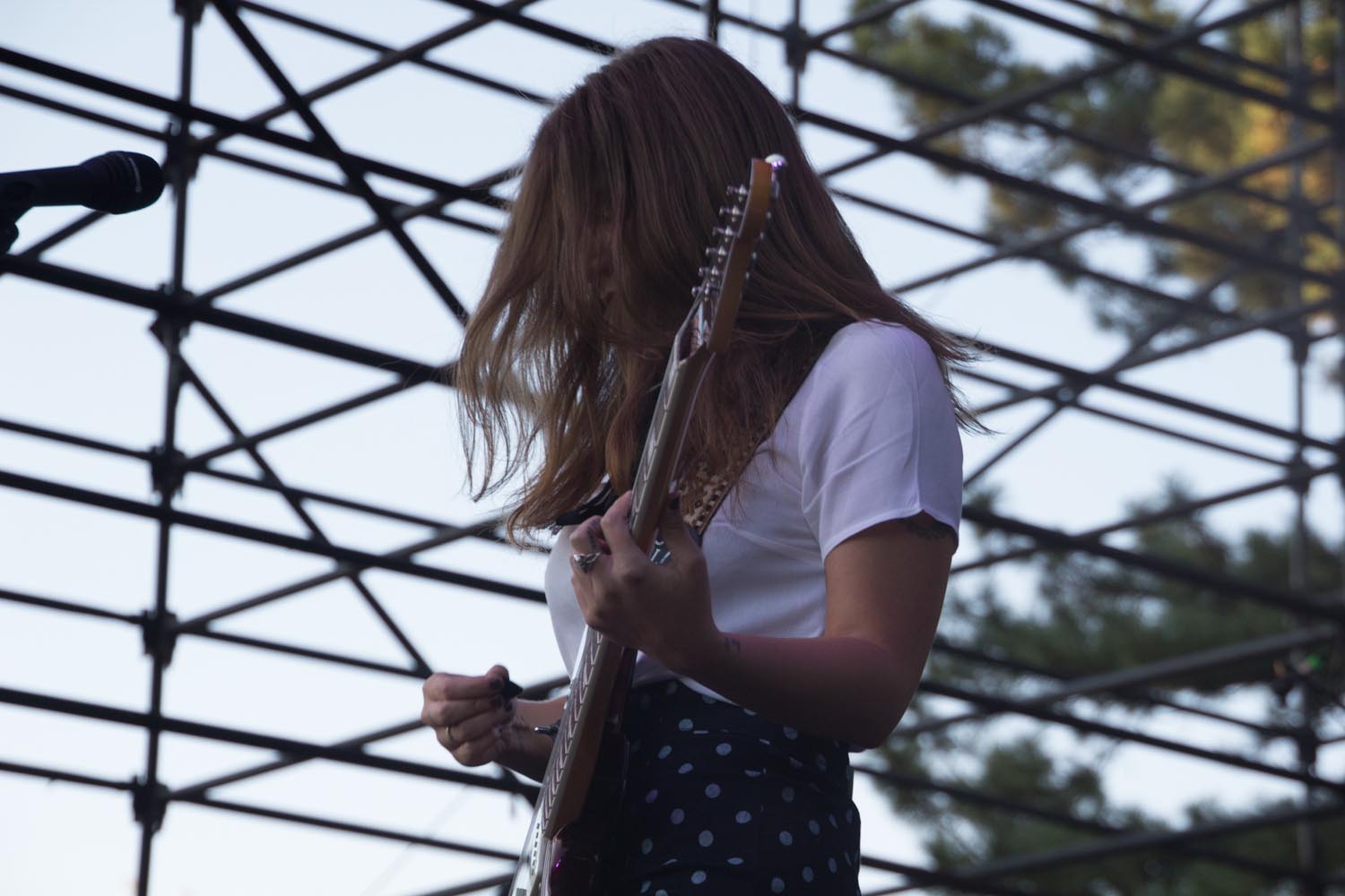 I’ve been a fan of St. Vincent for several years, since her album Marry Me was released in 2007. After reviewing tour dates far too often, imagine my fervor upon finding out that St. Vincent would indeed be closing this Twilight Series season! My fascination with St. Vincent is multifaceted. As I waited impatiently after the end of Best Coast’s set, I rambled to my friends about my fascination and why I believe St. Vincent; or rather post-modern indie-rock queen Annie Clark is the best thing happening in music. After rambling on about how her lyrics provide a social critique toward relationships, gender roles, as well as society’s dependence on technology and information, my friends changed the subject.
