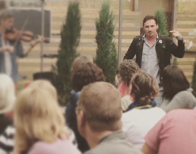 While Steele’s melody held the audience in a trance, a voice burst out, “Talk Louder!” and then again, “Talk Louder!” as poet Josh Wagner stood and began reciting a poem of death, doom and hope.