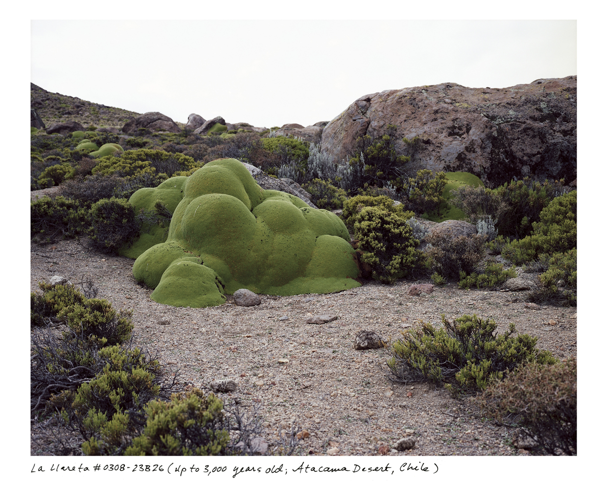 Rachel Sussman was recently named a 2014 Guggenheim Fellow. To qualify for such a prestigious honor, applicants are pooled with 4000 of the best contemporary artists, and then are deemed to have already demonstrated exceptional capacity for exceptional creative ability in the arts above their highly talented peers. Before they vanish due to the environmental impact of climate change and the human footprints, she documents the oldest living species our planet has kept alive. Her work includes exploring plants like Pando, the “Trembling Giant,”- a colony of aspens in Utah with a massive underground root system estimated to be around 80,000 years old. Or the dense Llareta plants in South America that grow 1.5 centimeters anually and live over 3,000 years.