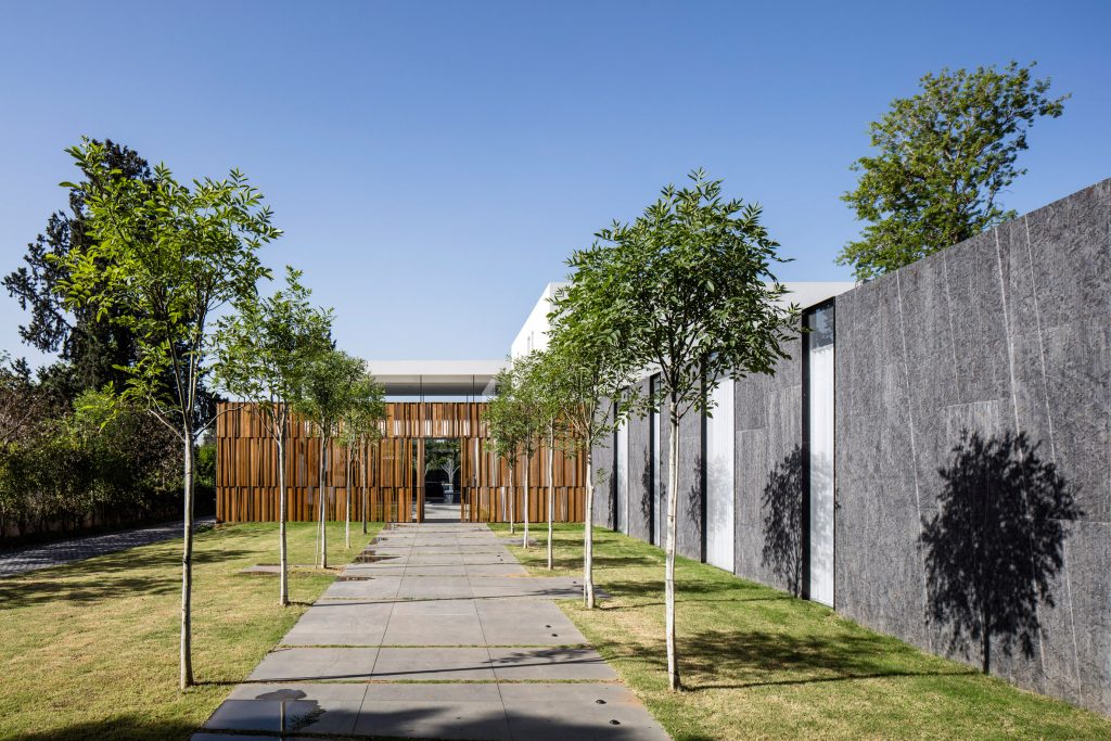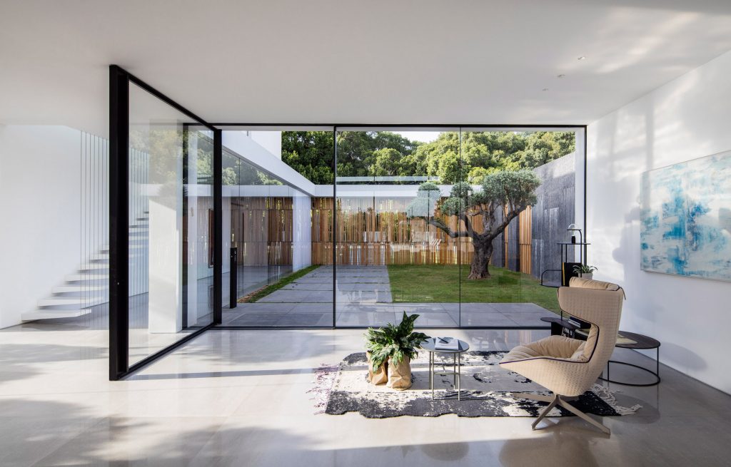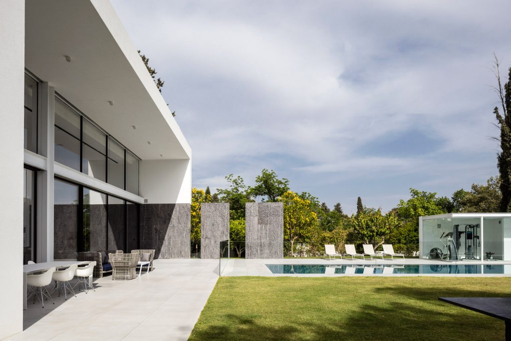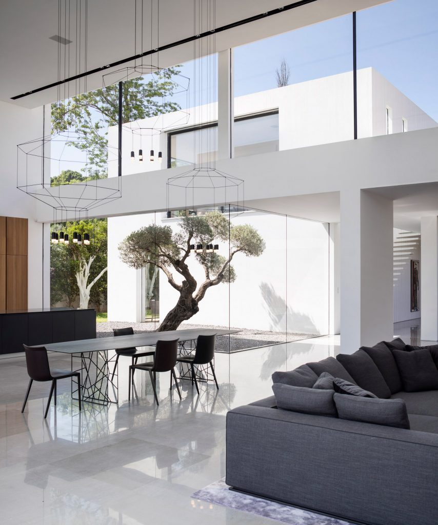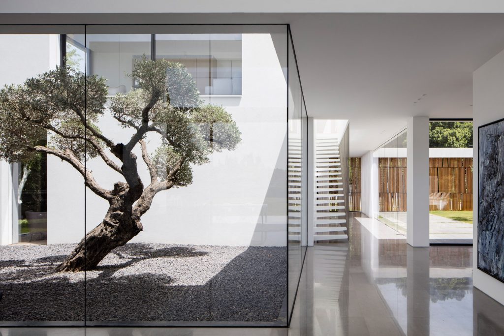 Pitsou Kedem Architects has completed a family home in the Savyon district of Israel, featuring living areas flanked by glazed walls facing onto private courtyards.